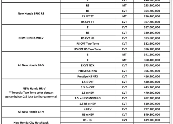 Bandingkan fitur-fitur unggulan dari berbagai model Honda.