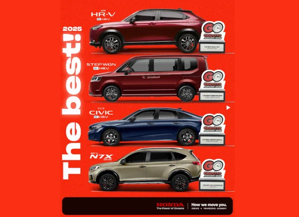 Empat model mobil Honda meraih penghargaan bergengsi dalam ajang GridOto Award 2025 yang digelar di Jakarta pada Selasa, 11 November 2025. Keempat penghargaan ini masing-masing diraih oleh Honda BR-V, serta tiga model hybrid yaitu Honda Civic RS e:HEV, Honda HR-V e:HEV, dan Honda Step WGN e:HEV. Pencapaian ini menjadi bukti nyata kepercayaan konsumen Indonesia terhadap kualitas produk Honda yang terus relevan di berbagai segmen, sekaligus menegaskan komitmen Honda dalam menghadirkan kendaraan sporty, advance, dan reliable bagi keluarga Indonesia.
